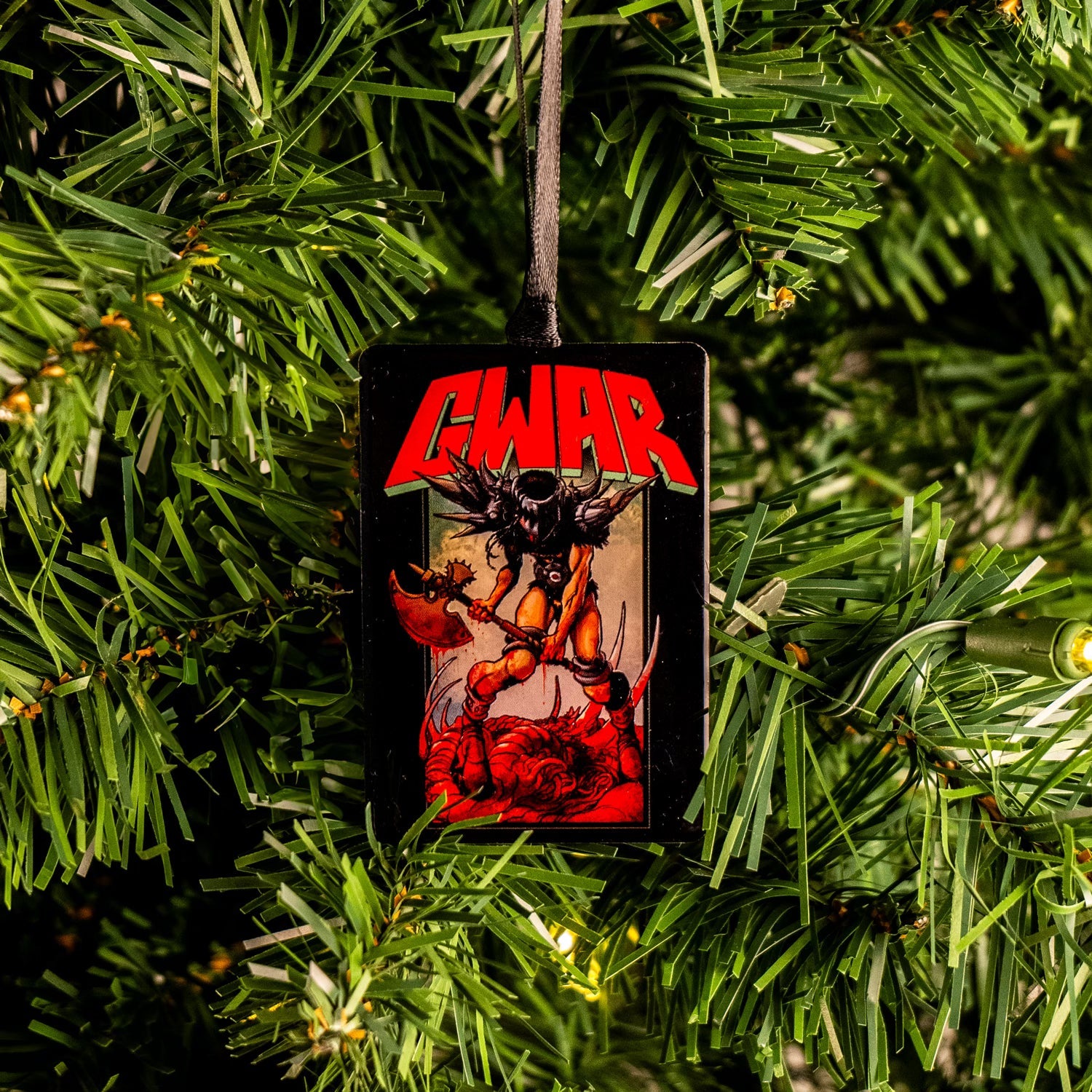 Trick or Treat Studios is proud to present the officially licensed. Holiday Horrors - GWAR Balsac - Metal Ornament. This highly detailed ornament is beautifully screen printed on a metal frame. The ornament comes with a ribbon so that you can hang it in your car. house. office. and of course. on your Christmas Tree.